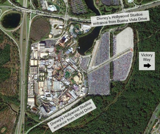 It seems like Disney at Work just may have the answer, and it resides in the parking lot. According to the site, the second parking entrance to Hollywood Studios (yes, DHS is the only park at Disney World to actually feature two ways in or out) that opens on World Drive will be closed and dismantled, allowing Imagineers to put up new rides around the likes of Lights! Motors! Action! and Star Tours.