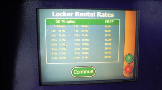 Here’s a useful tip if you have quite a lot of stuff with you: you can use as many of the complimentary- for-the-duration-of-your-ride lockers as you would like, so don’t feel that you have to really cram your stuff in those small lockers. On the other hand, though, you will have to pay for each prepaid locker that you want to use.