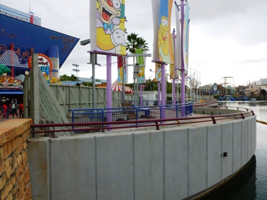 The entry area to Springfield was blocked due to concrete work on the main walkway. Guests are required to walk next to the Animal Actors Stadium entrance toward the Springfield restrooms in order to access Springfield from the Hollywood Boulevard side of the park.