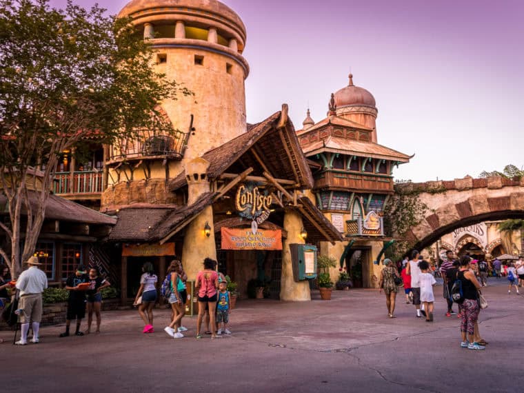 At Islands of Adventure, Mythos features vegan pad thai (a favorite) and a souvlaki couscous bowl (these options also have a non-vegan variety, so they need to be requested as vegan upon ordering). Additionally, the complimentary bread service can be vegan but should be double-checked before consuming, in case suppliers have changed, and the mezze platter is also a wonderful vegan appetizer available at the restaurant. Confisco Grille offers a variety of dishes, as well, including pad thai, hummus, fajitas (served without meat or cheese), and chipotle sausage with orzo, which features Gardein sausage crumbles, chipotle pesto, and roasted red peppers.