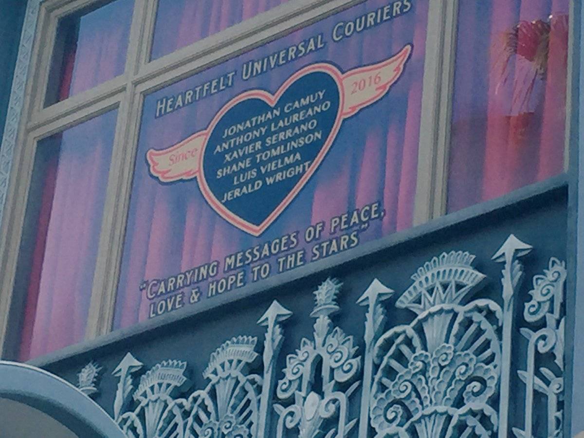 Universal Orlando recently added a window tribute in the Hollywood area of Universal Studios Florida in memory of the Pulse victims that were a part of the NBCUniversal family. The window is near Universal’s Horror Makeup Show.