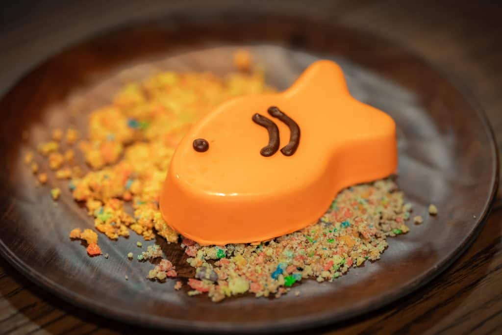 For dessert, you might not think fish would have a place on the menu, but for our vegetarian friends, you can check out Stormfly’s Catch of the Day! This cereal crumble and chocolate mousse fish is just as fun to look at as it is to eat.
