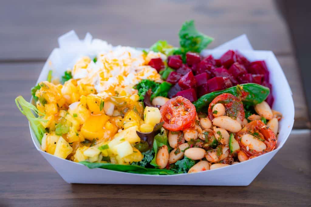 Spit Fyre Grill has another vegan offering that is sure to please. Valka’s Vegan Bowl is filled with kale spring mix, bean salad, pineapple salsa, candy beets, vegan feta, and mango and mint vinaigrette. It’s a nice, refreshing treat to have while you sit in the seating area overlooking the Fyre Drill boat ride!
