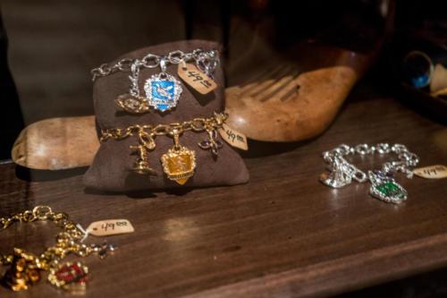 Madam Malkin’s is particularly popular for its supply of Hogwarts robes, which come in all sizes and can be purchased for any of the four houses (Gryffindor, Slytherin, Ravenclaw, or Hufflepuff). The store also has a large assortment of house-themed attire and accessories to choose from, including shirts, scarves, hats, socks, lanyards, bags, watches, and ties. Fine jewelry, ranging from simple earrings and bracelets to unique, gem-adorned necklaces can be found here as well.