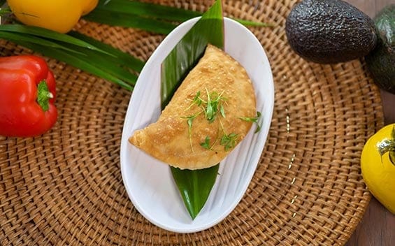 Crispy Pastry stuffed with Guava paste & cream cheese empanada, powdered sugar
