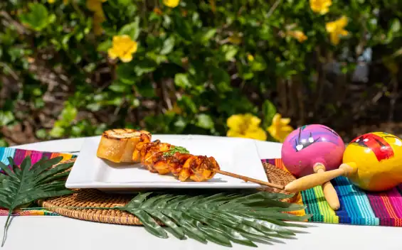Grilled Marinated Chicken on a skewer, glazed with our Homemade BBQ Sauce, served with Cuban Bread
