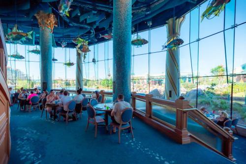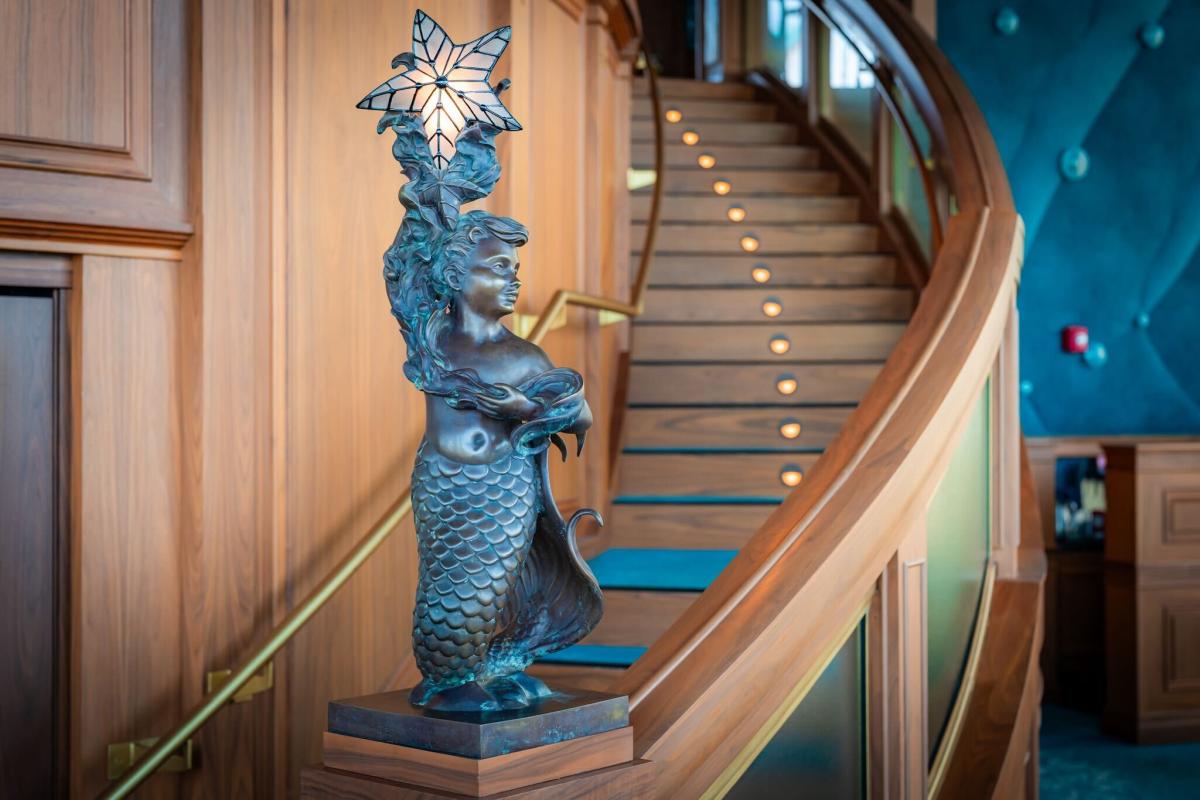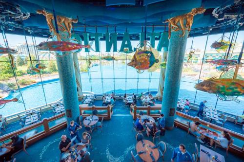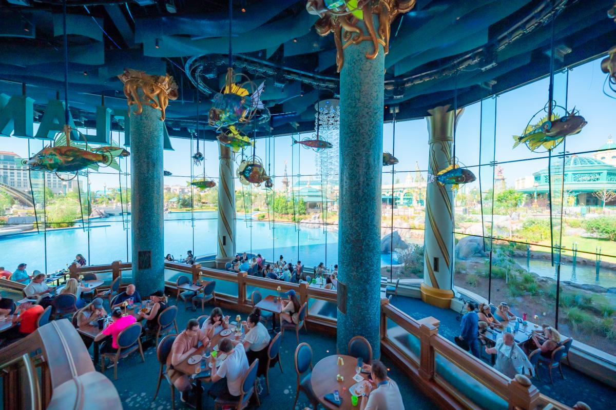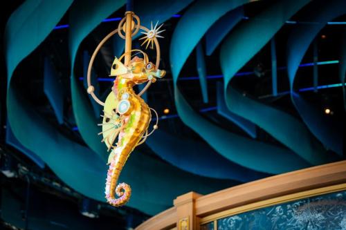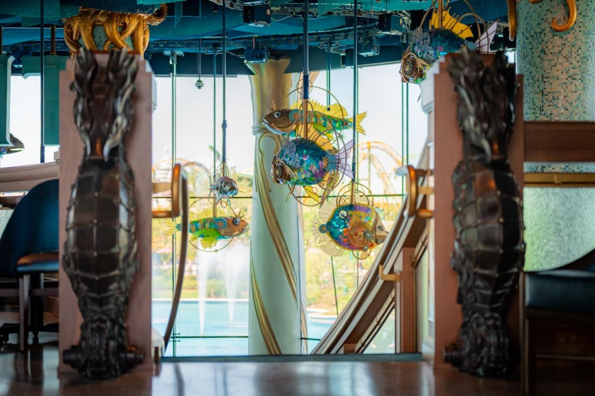 - To create the atmosphere of an aquarium, Atlantic features 36 fish-shaped bio-mechanical lanterns that appear to swim overhead. Light emanates and shimmers through the scales of these fish, enhancing the undersea illusion. Additionally, the dining space is adorned with bronze statues of a merboy and a seahorse, adding to the aquatic theme.