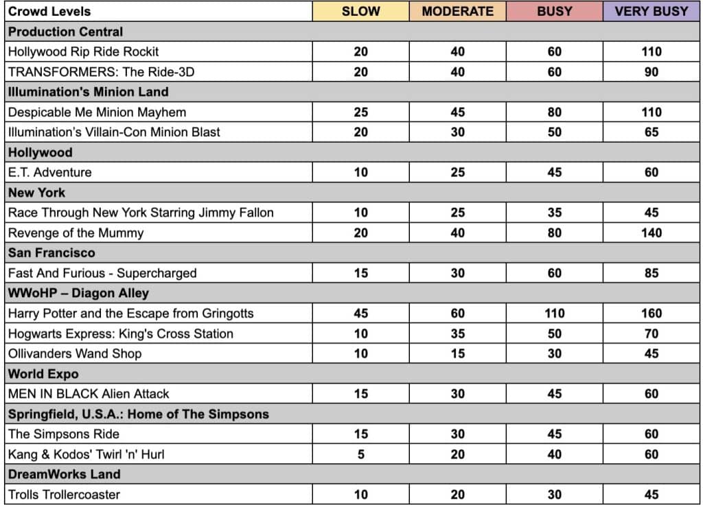 - Universal Orlando Ride & Show Wait Times Based on Crowd Levels