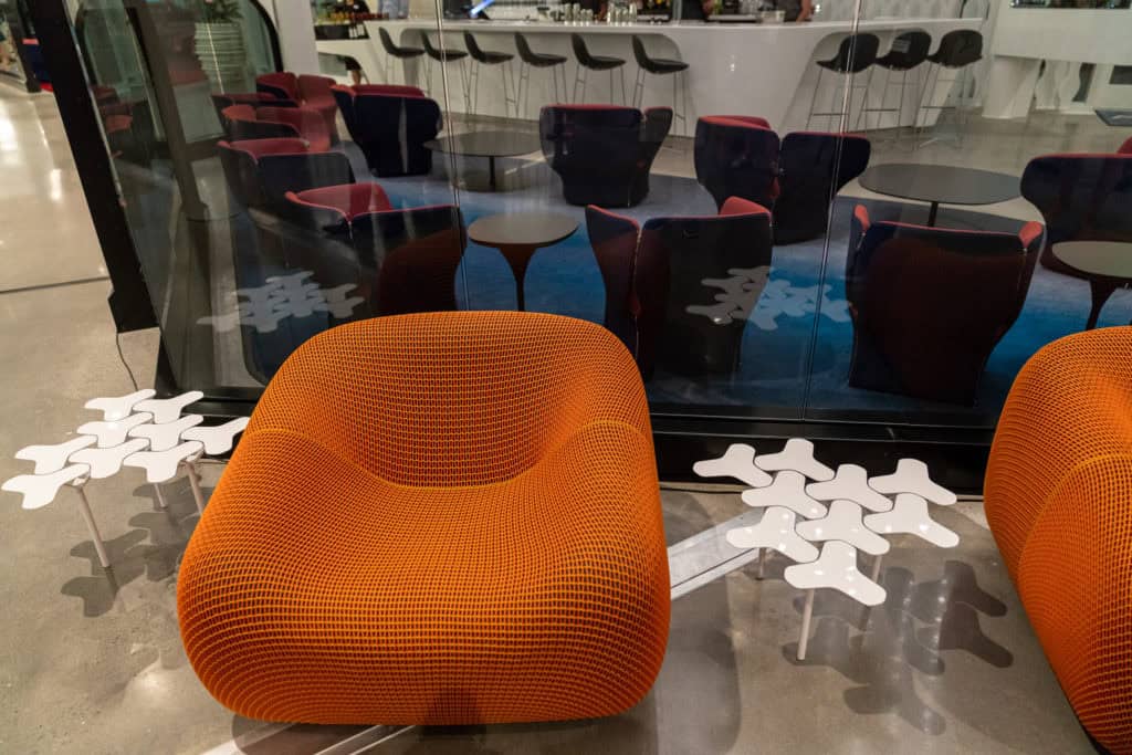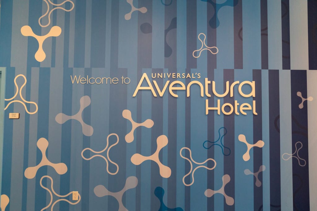 The lobby of Universal Orlando’s sixth hotel is one of the biggest – open and spacious, and yet just as sleek and streamlined as the rest of the building. In the beating heart of Aventura Hotel, you’ll find the bustling of vacationers checking in and out, guests stopping for a drink at barVentura, or taking advantage of the guest services available (such as vacation planning and luggage services desks). The company says this is to initiate conversations from the guests who navigate it, but it could just as easily be for the beautiful sights it creates.