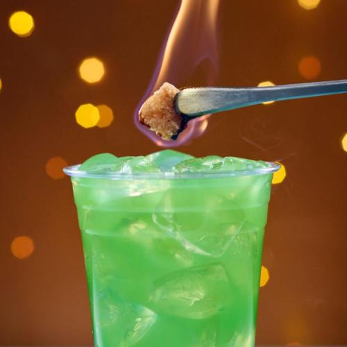 Grenadine, stone fruit and tart cherry syrups, purple prism powder, cocktail cherries, and Sprite