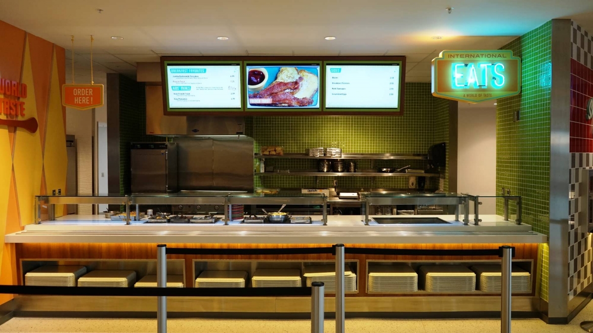 Bayliner Diner is the main eatery of Cabana Bay Beach Resort, with a huge selection of hot, cold, and grab-and-go options that are sure to please the whole family. Open for breakfast, lunch, and dinner, Bayliner boasts a huge dining area – you’re practically guaranteed a seat with minimal waiting, even at the busiest of times. The kiddos (and adults, too!) will be entertained by the retro cartoons and commercials that play on big screens throughout the space.