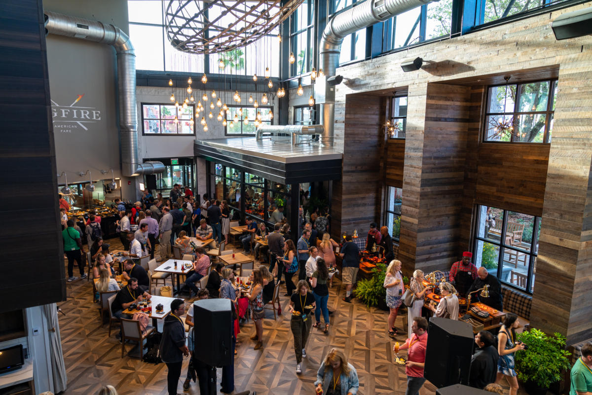 Conceived in conjunction with Universal’s theme-park designers, just as the impeccable Toothsome Chocolate Emporium and Savory Feast Kitchen was, Bigfire consists of small touches throughout, making this one of the most detailed venues at CityWalk (even if that theming is meant to be more subtle than bold). The restaurant is designed to feel like a grand lakeside lodge, employing warm colors, cast-iron and wood accents, retro camp lanterns, a cozy fireplace inside, and a fire pit outside in order to pull off the effect. Every outdoor seat comes with a tableside s’mores kit, and there are also oversize plaid blankets and various lawn games strewn about out here, as well, sealing the family-on-summer-vacation deal.
