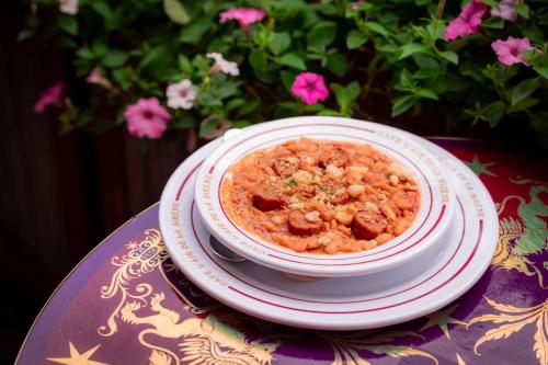 This quick-service restaurant is beautifully adorned with carved marble and intricate details of fantastic beasts hidden within the tile and mosaic designs. Guests can enjoy their meal amidst the stunning decor or sit outside to soak in the ambiance of the streets of Place Cachée.