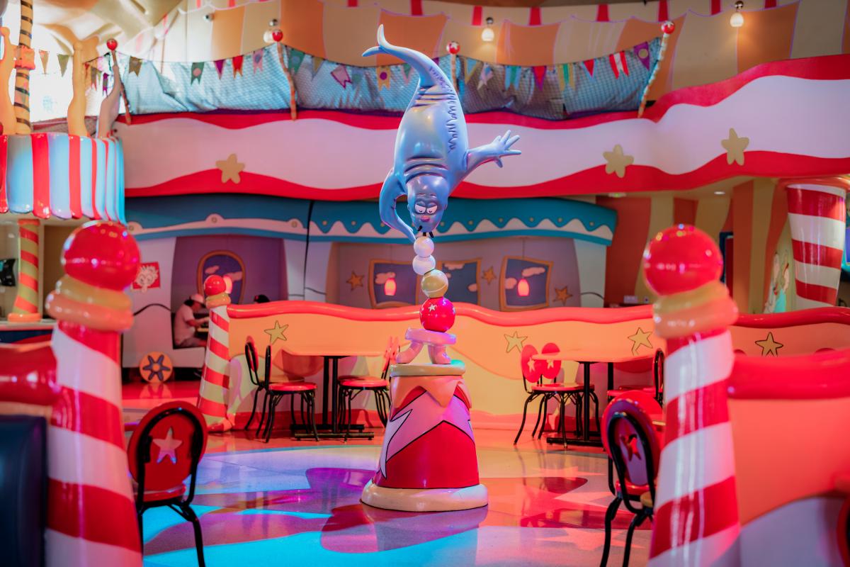 The design of this restaurant is based off of the fanciful imaginings of Little Morris McGurk, a character in Dr. Seuss’s classic story If I Ran the Circus.