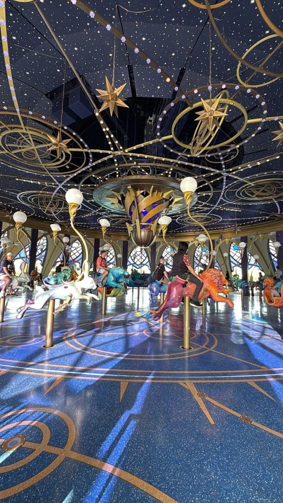We’re giving this attraction a calm and collected zero out of five supernovas on the fear scale. It’s a gentle, slow-paced ride—complete with the classic carousel bench option—so you can customize your experience to match your comfort level.