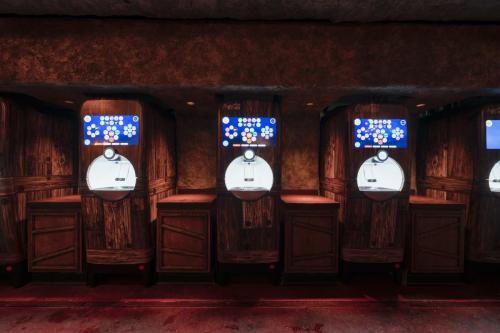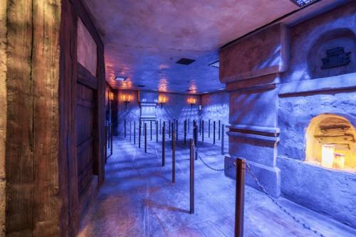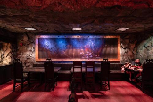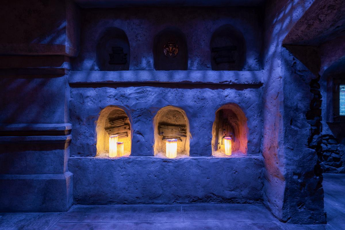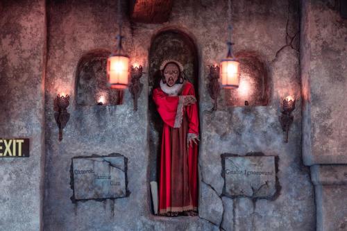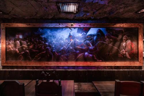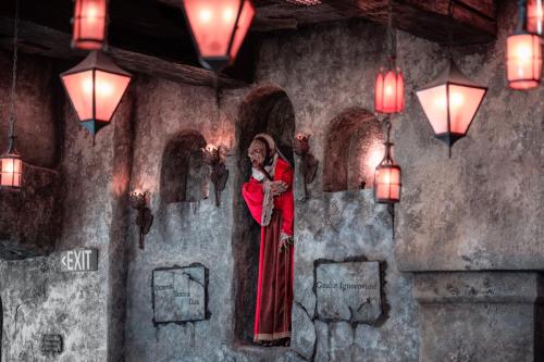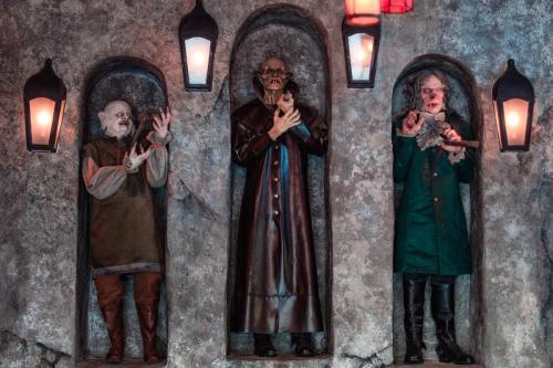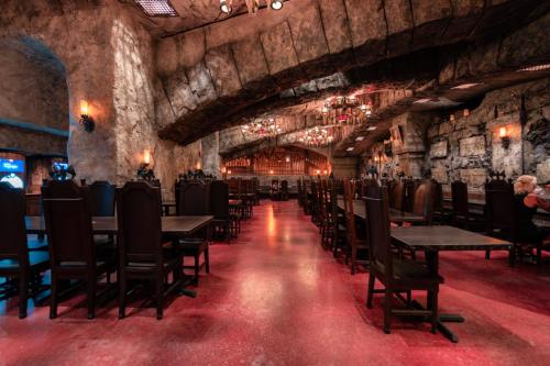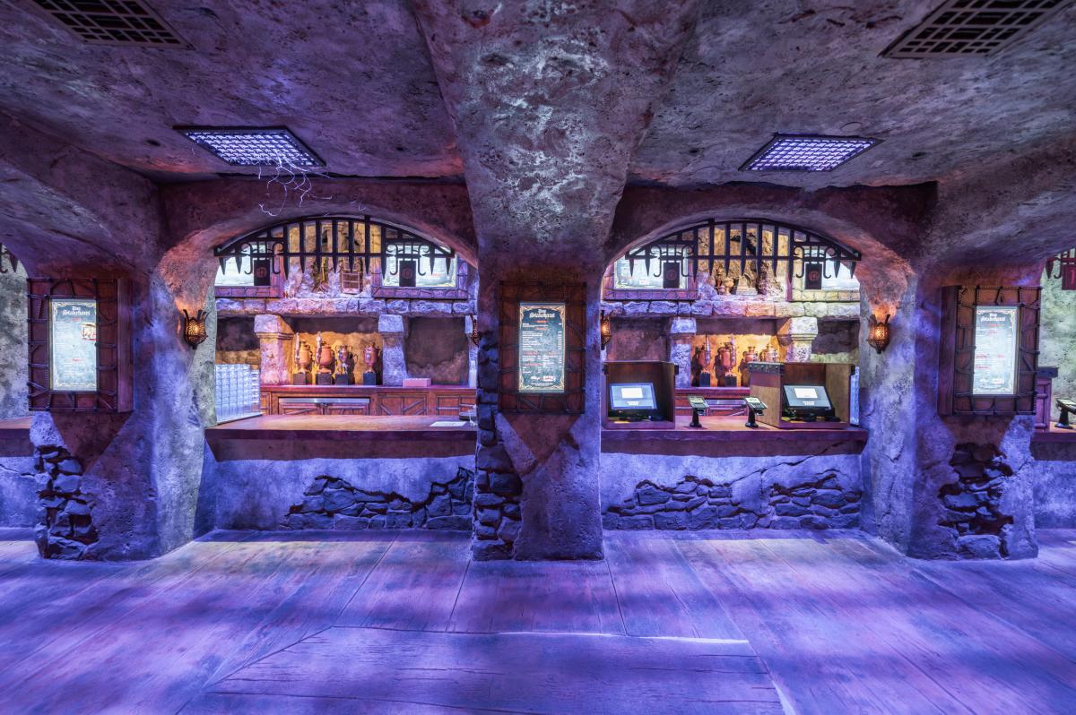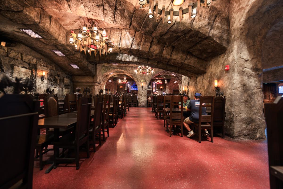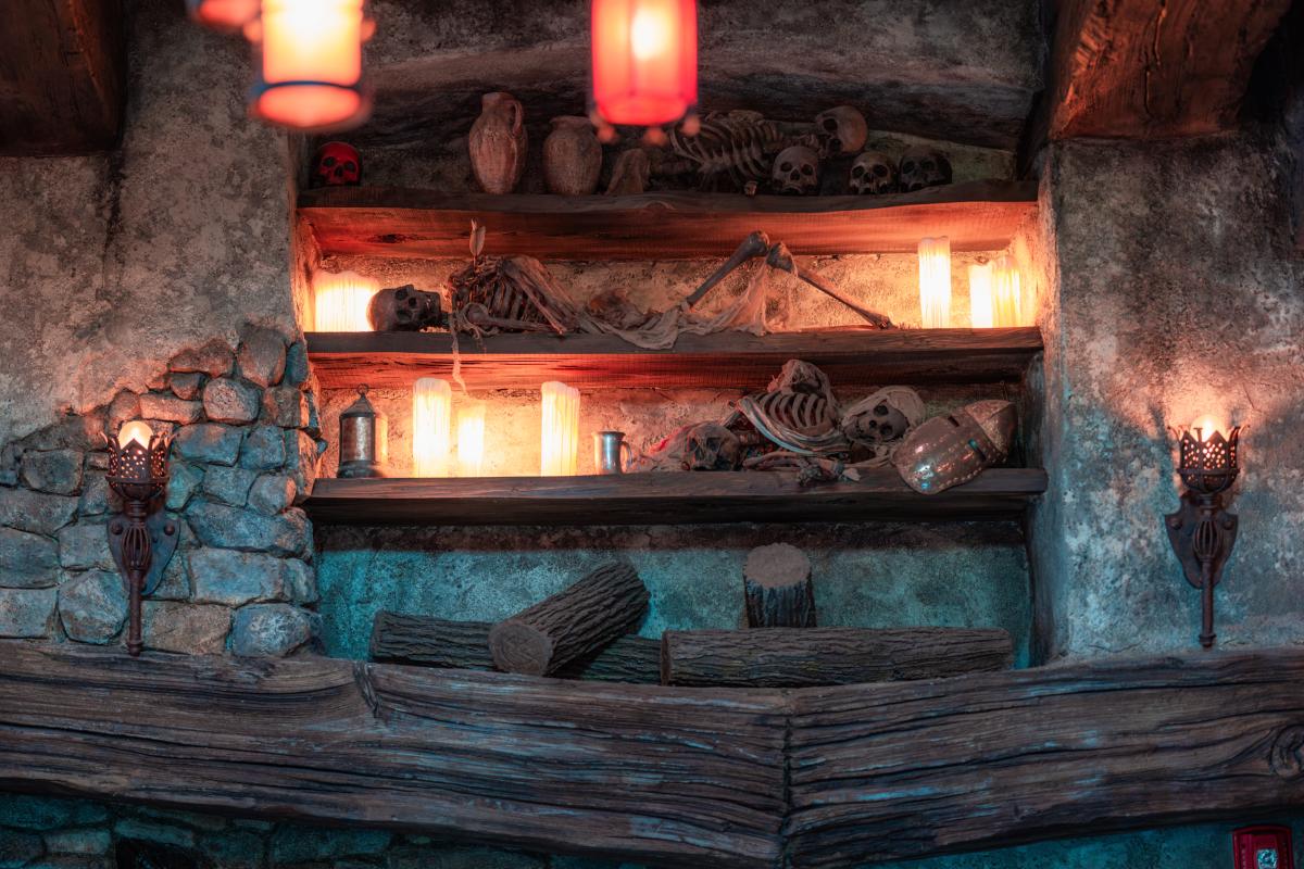 Dine at Das Stakehaus, a cleverly named restaurant that plays a playful nod to one of the vampire’s classic weaknesses: the stake. This fast-casual restaurant run by “familiars” rests atop of the ancient catacombs where the Darkmoor vampires reside. As you dine above, they dine below.