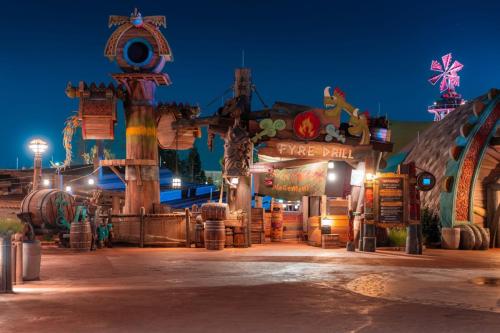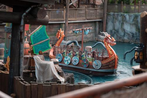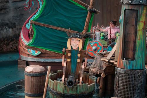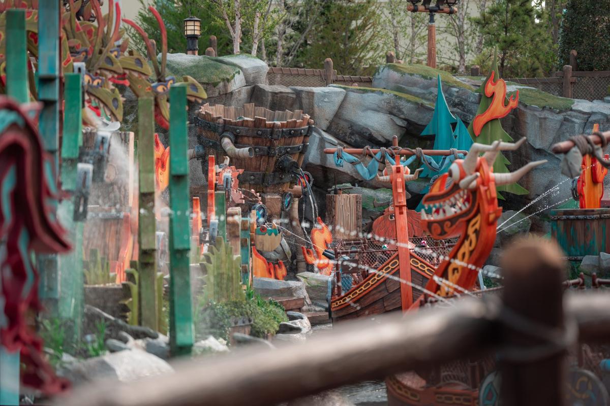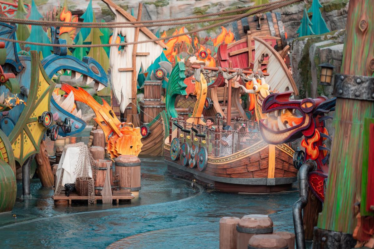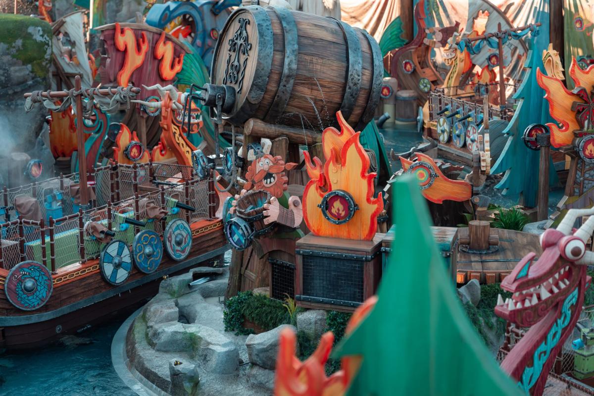 Viking twins Ruffnut and Tuffnut have reimagined Berk’s Fyre Skööl as Fyre Drill, a family-friendly, interactive boat ride. Guests are invited to this playful competition by aiming at flame-like targets (and even other boats!) with onboard water cannons.