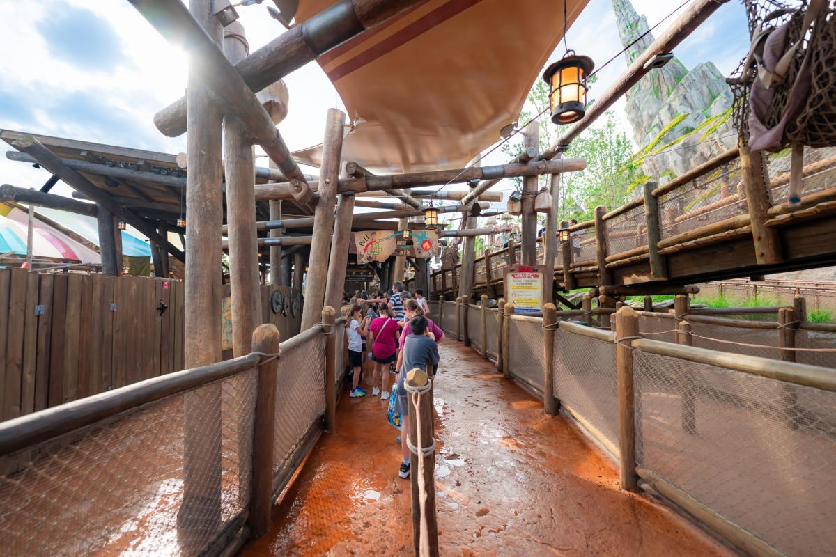 The chances of getting wet on this attraction are pretty high—even while you’re still in line. For that reason, it’s a great ride to tackle before a midday break or as one of your final stops of the day. Ponchos are a wise move and are available for purchase throughout Universal.