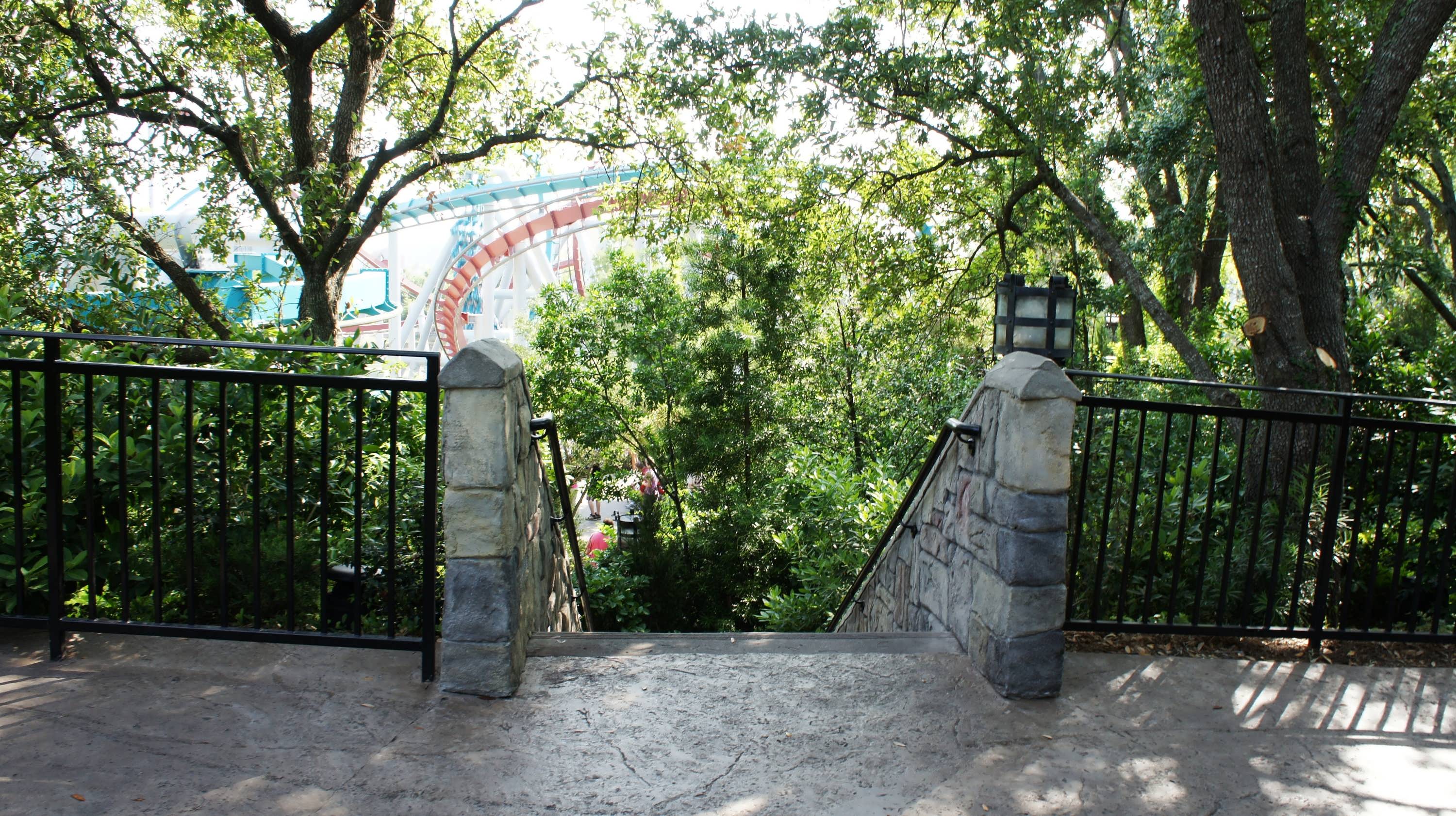 Since Dragon Challenge scared off many adults and younger children, and most of the people walking up the queue just wanted to get to the ride, the viewing area was usually empty. That meant when the crowd was six or seven deep for the live shows, guests could come up here and easily get an excellent view of the performances.