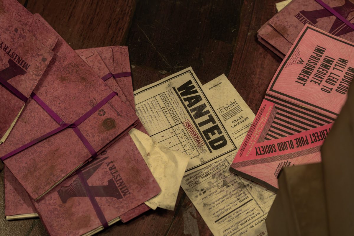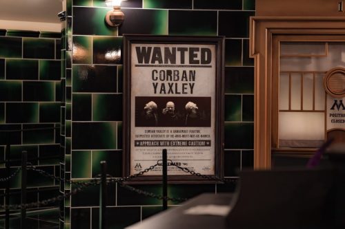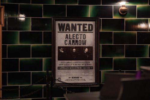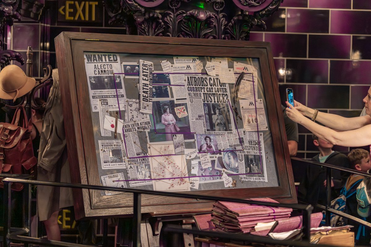 Continuing on, you’ll step into the Auror’s Headquarters, where they are actively gathering information for ongoing cases. Be sure to keep an eye out for hidden Easter eggs throughout this section, including a tribute to fallen Aurors. Finally, you’ll walk through Dolores Umbridge’s pink and gold office, adorned with her infamous cat plates. Her former house-elf, Higgledy, can also be seen here, packing up the office in preparation for an upcoming trial.