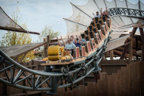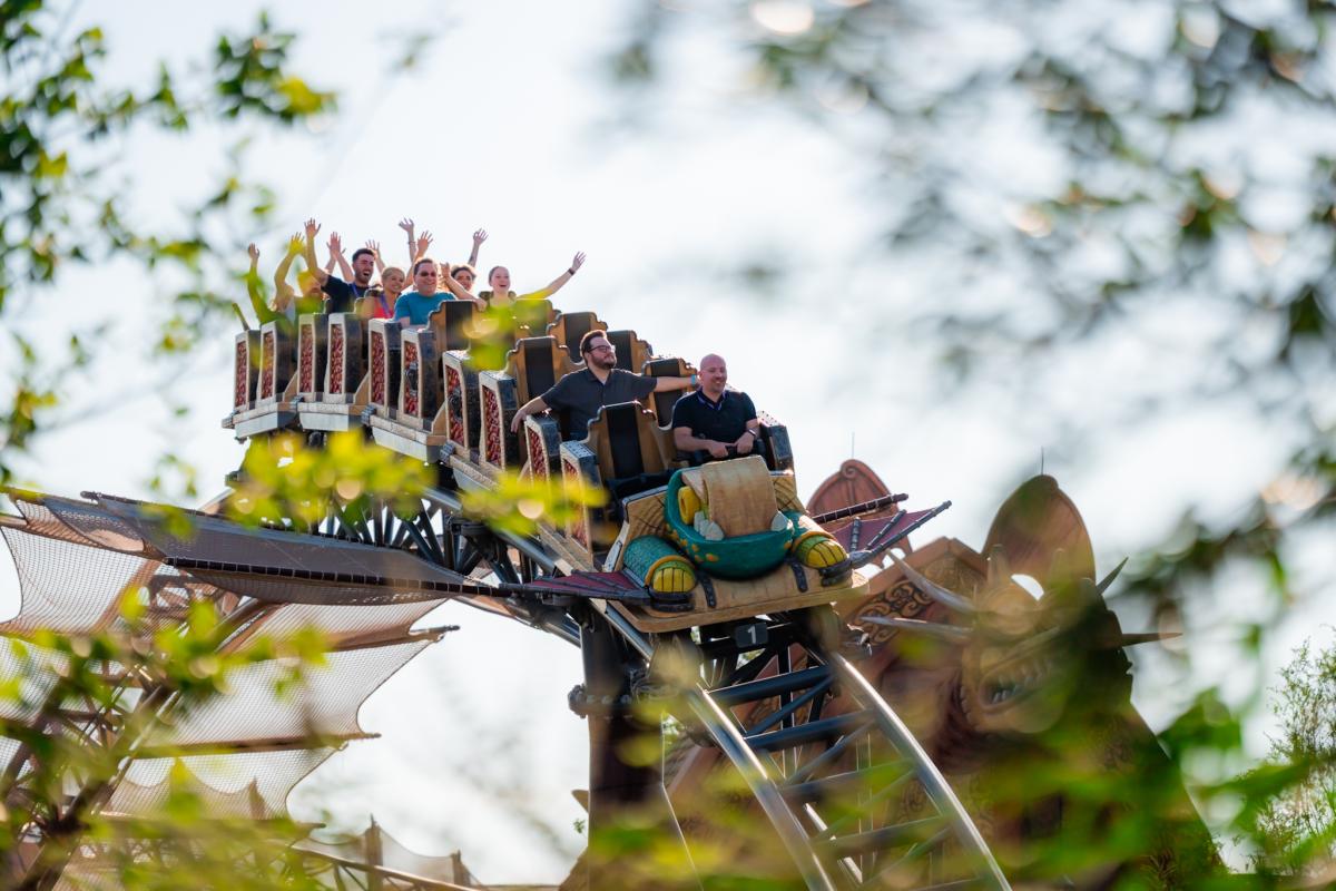 Dragon Racer’s Rally is inspired by Berk’s favorite pastime: Dragon Racing. This thrilling ride elevates guests skyward with the help of a Viking-engineered dragon-riding trainer. Experience breathtaking aerobatics and high-speed barrel rolls atop two Viking-crafted dragon-riding simulators, soaring up to 67 feet. Guests have the power to tailor their ride from “mild” to “wild,” executing gravity-defying maneuvers and showcasing the swooping and soaring skills required to gain the honors of a champion dragon racer.