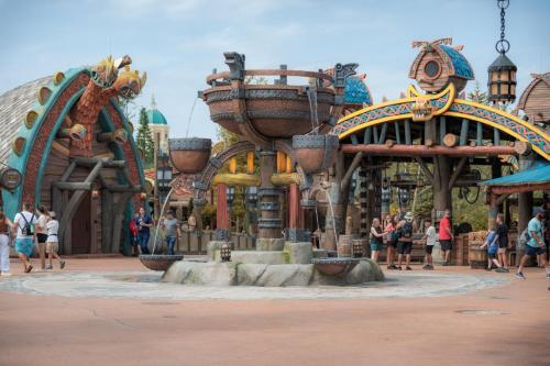 Viking twins Ruffnut and Tuffnut have reimagined Berk’s Fyre Skööl as Fyre Drill, a family-friendly, interactive boat ride. Guests are invited to this playful competition by aiming at flame-like targets (and even other boats!) with onboard water cannons.