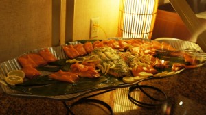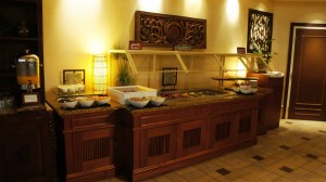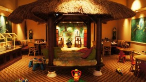As you’ll see in the photo gallery below, Islands Dining Room brings together an eclectic Asian vibe that takes inspiration from not just the South Pacific, but also Indonesia, Vietnam, Thailand, and more. The fun frogs that surround the main room were carved in Indonesia, and the serving stations and wood-screen panels are reminiscent of a Vietnamese pagoda or Japanese ryokan (respectively).