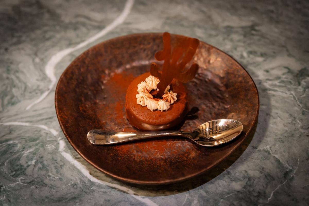Cherry-soaked chocolate cake, chocolate mousse, and cherries encased in a crispy-crunchy chocolate shell