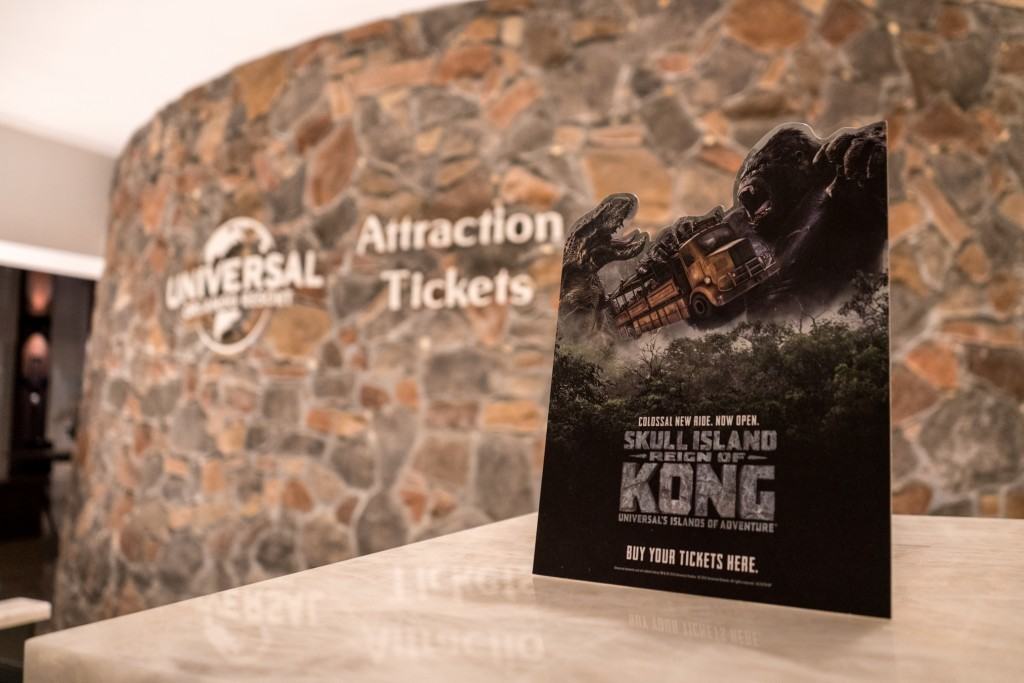 Upon walking into the Sapphire Falls lobby, you’ll find what appears to be an island mansion completely restored into an awe-inspiring hotel. The area is detailed with restored wood and stone, and your eyes are drawn to the chandelier made of basket material that hangs high over your head. The lobby is also home to a large seating area with a giant television. Strong Water Tavern, the hotel bar, and New Dutch Trading Co., a grab-and-go quick-service, are directly off the lobby. Universal Orlando Resort’s attraction ticket desk and gift shop are also located here.