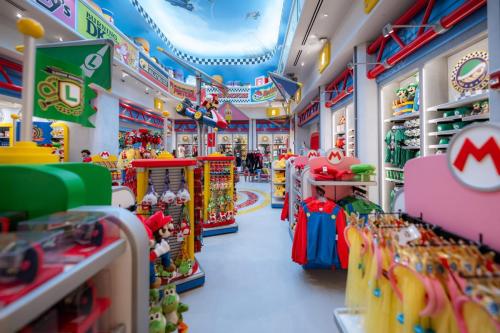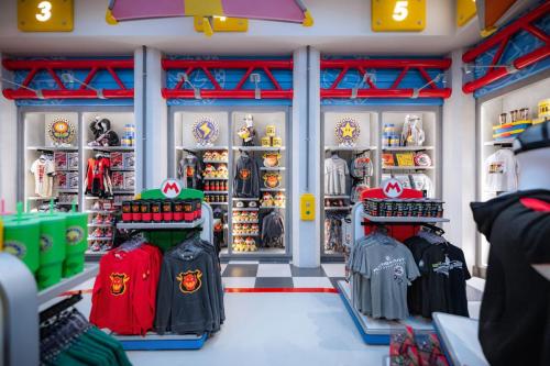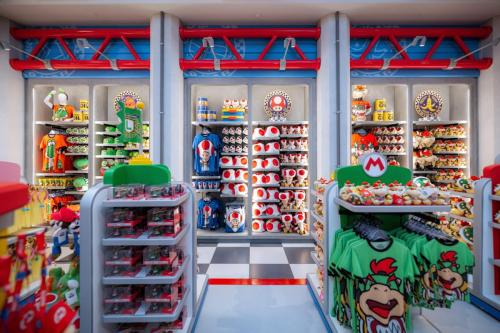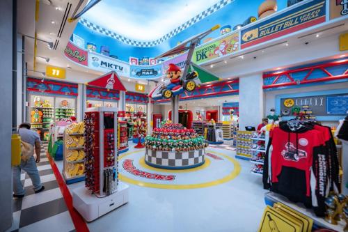 Mario Motors is the exit gift shop for Mario Kart: Bowser’s Challenge at SUPER NINTENDO WORLD, and it’s a must-stop for any fan of the game. Styled with a racing theme, this shop is packed with merchandise themed to your favorite racers, so you can grab the perfect souvenir repping the character you main at home.