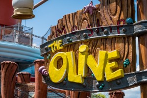 Tucked against the edge of Islands of Adventure‘s lagoon, Me Ship, the Olive is a multi-story play area for kids that includes steps, slides, and interactive features to explore. Don’t miss the free water canons at the top for spraying guests on Popeye & Bluto’s Bilge-Rat Barges.