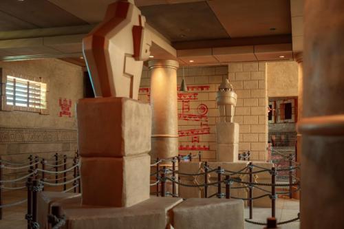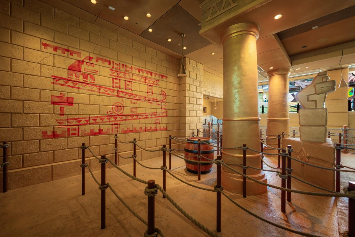 You’ll spot Pikmin throughout SUPER NINTENDO WORLD, including in the queue for this attraction near the loading platform.