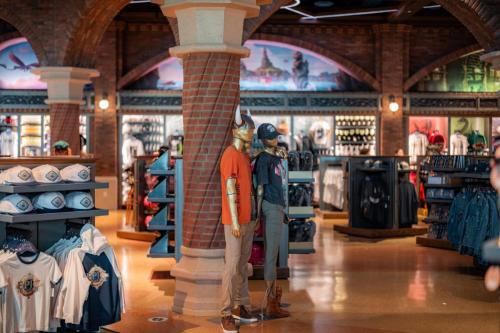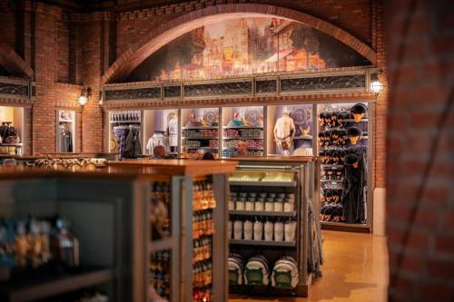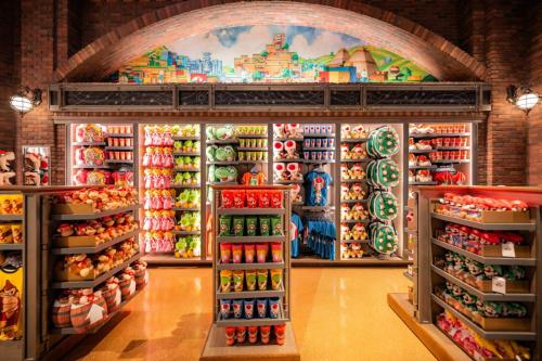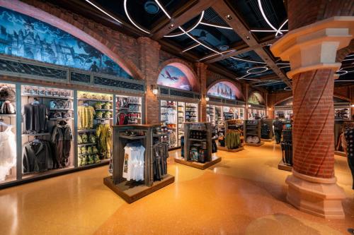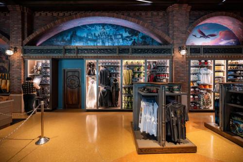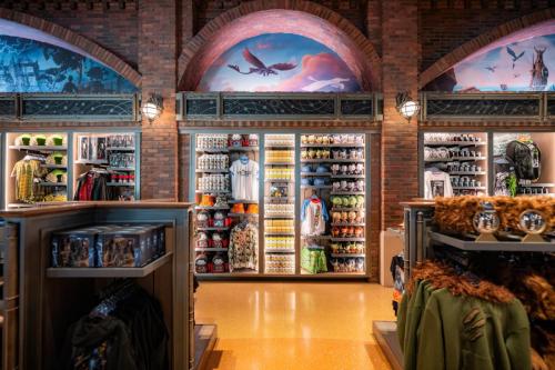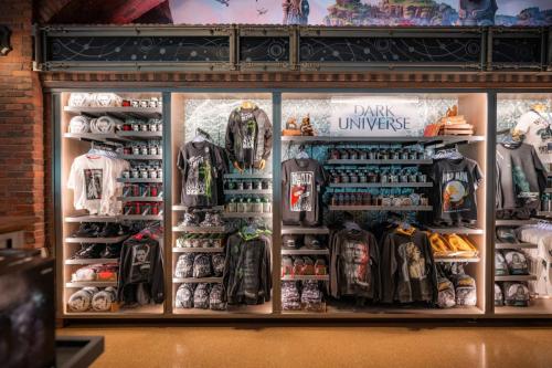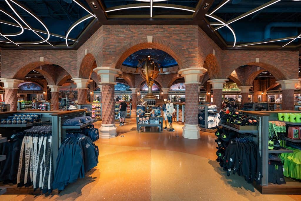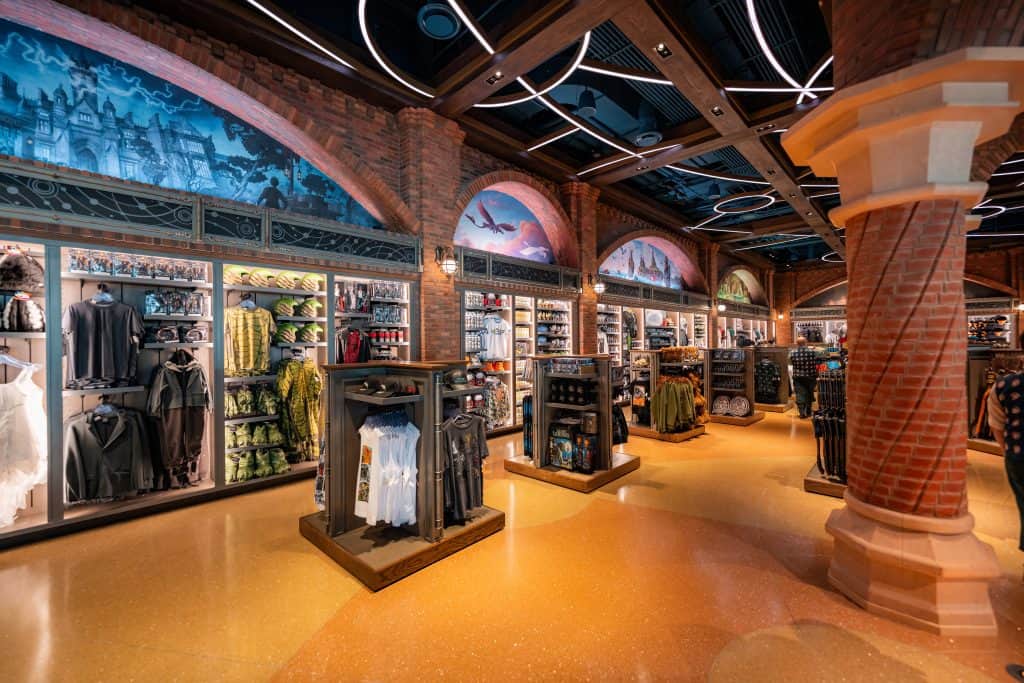 This merchandise location offers a wide selection of merchandise from each Epic Universe portal, making it the perfect final stop as you exit the park. Whether you missed a souvenir earlier in the day or want one last look around, this shop has you covered with toys, apparel, collectibles, and more—all conveniently organized by world. You’ll also find exclusive Epic Universe merchandise, ideal for commemorating your visit in style.