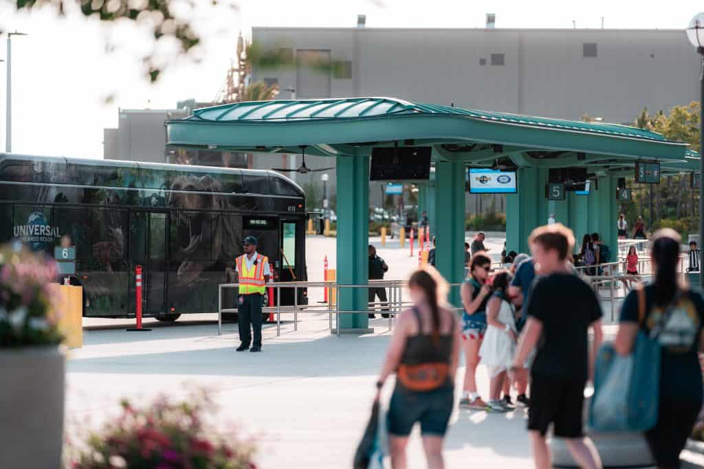 If you are being dropped off by a taxi or bus (including Universal’s own on-site transportation), you will be brought to a large drop-off area right beside the transportation hub. From there, you will take an escalator (or elevator) up to the security checkpoint. This area is located outside of the parking garage toll booths, so those drivers won’t have to pay for parking, either. This is also the same spot where you can catch a cab back to your hotel at the end of the day.