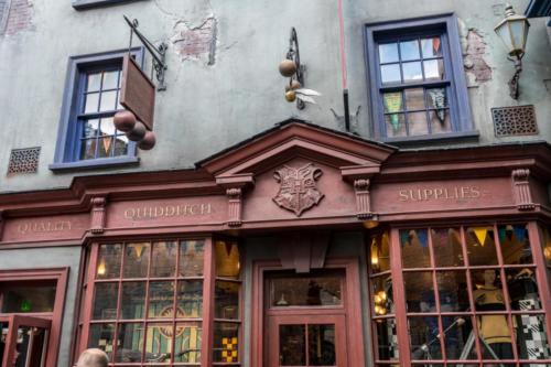 Inspired by the most popular and beloved sport in the Wizarding World, Quality Quidditch Supplies is a shop that offers primarily Quidditch-related merchandise, as well as a selection of gear and accessories to represent your favorite Hogwarts house.
