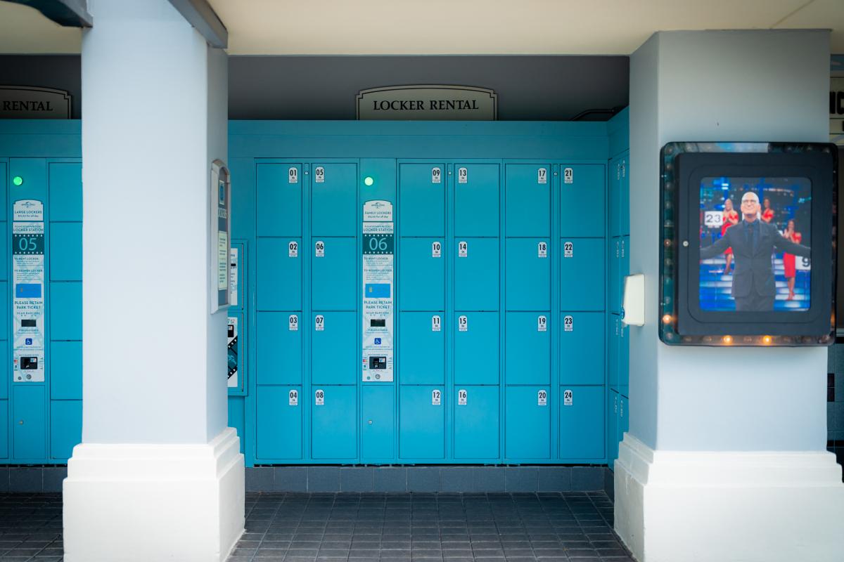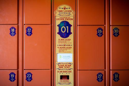 - Cash: Use the kiosk located at the front of the locker area. After payment, you’ll be assigned a locker station. Find your locker and hold your family’s designated locker wristband to the Tap Point to open it.