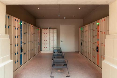 The ride lockers break down into two categories: those that are (largely) complimentary for the duration of your ride and those for which you have to pay up-front to use.