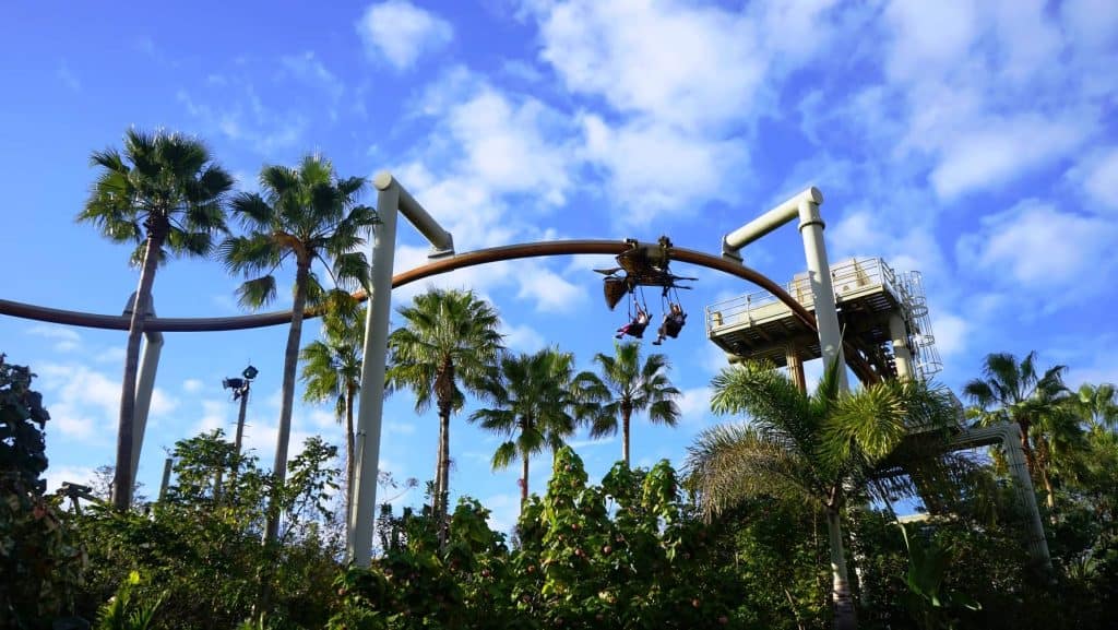 Where to sit: The ride vehicles work in pairs of two, with layered rows of four seats. They actually operate in an interesting way; whenever a ride scene unfolds, they split up, allowing both cars to get a great view of the action. With that said, the front row of each will still get you closer to all the wizarding commotion, but the very last row of the last car is still the OI team’s personal favorite, as it makes Escape from Gringotts’s opening hill feel more like a true roller coaster.