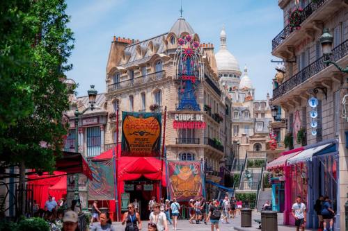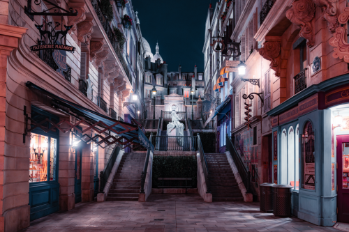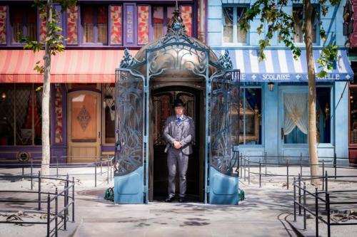 While exploring the streets of Place Cachée, guests may encounter a variety of visitors, officials, and residents from the wizarding world. An Auror from the Ministère des Affaires Magiques de la France stands guard at the entrance, questioning those who dare to enter. Talking portraits of charismatic wizards engage with locals, sharing the latest happenings in Place Cachée.