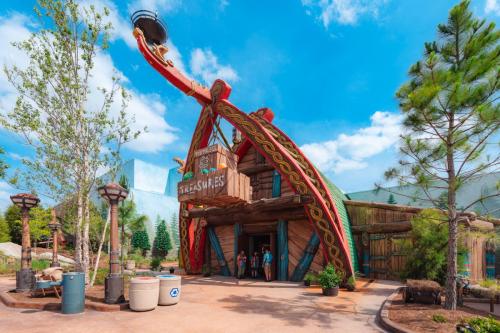 Inside, guests can explore a treasure trove of dragon-themed merchandise inspired by the legendary creatures of Berk. From blind-box collectible dragon toys to themed apparel and cuddly plush, there’s something for every aspiring Dragon Rider. Just like the brave Vikings of Berk, guests can even “adopt” their very own dragon, complete with a plush companion nestled inside a wearable crossbody egg carrier—perfect for adventuring around the park.