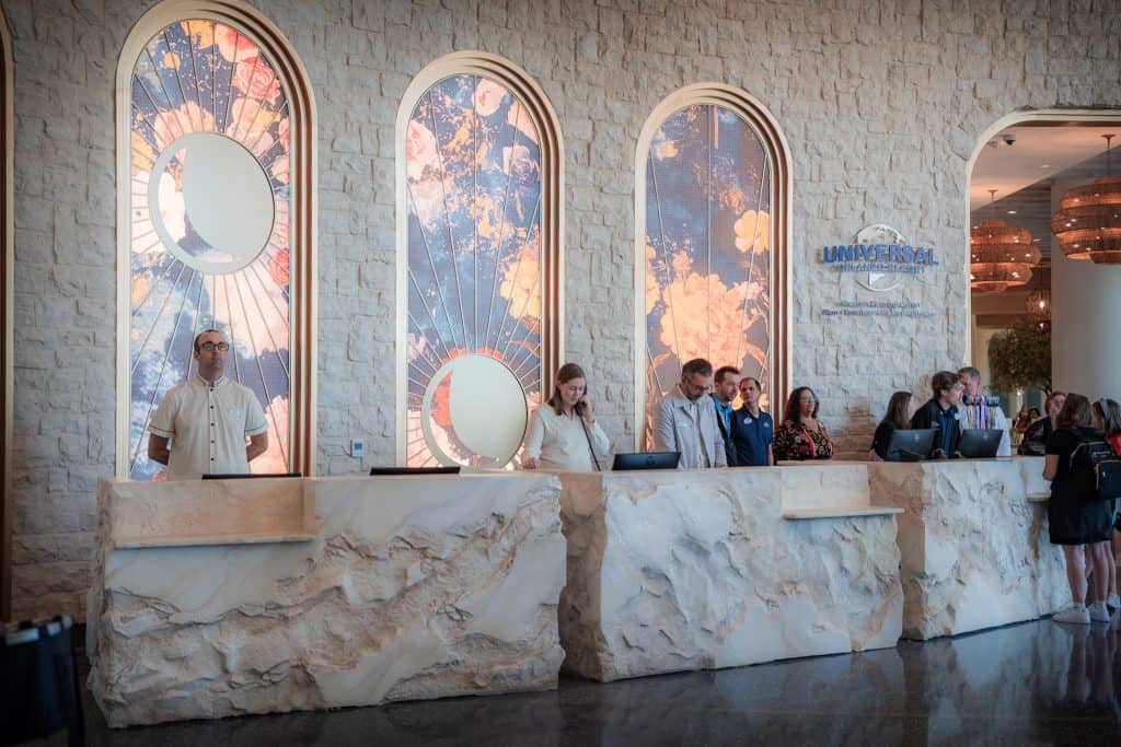 Step inside and you’ll feel like you’ve entered the palace of the sun god himself. The lobby is nothing short of breathtaking, with vibrant stained glass windows framed by elegant stone walls. This is where your adventure begins—with resort check-in, luggage services, a Universal ticket desk, a Universal Studios Store, and more all conveniently located.