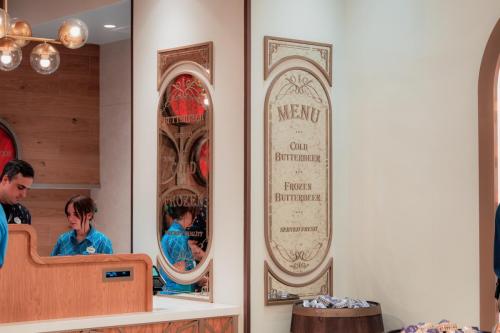 There is a (more-or-less) standalone Wizarding World of Harry Potter area contained here, as well, filled with its own little thematic touches, such as floating candles near the ceiling and the Gryffindor common room’s tapestry on one wall.